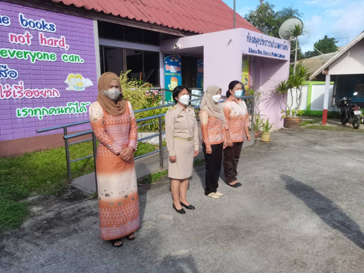 นางสาวรมณีย์ ทิ้งปากถ้ำ ครูอาสาสมัคร กศน.ตำบลย่านซื่อ ได้รับมอบหมายจากนายคณาธิป บุญญารัตน์ รองผู้อำนวยการสำนักงาน กศน.จังหวัดสตูล รักษาการในตำแหน่งผู้อำนวยการ กศน.อำเภอควนโดน จังหวัดสตูล พร้อมด้วยบุคลากรในสถานศึกษา ดำเนินกิจกรรมเข้าแถวเคารพธงชาติ ทำกิจกรรมทางศาสนา เพื่อแสดงความจงรักภักดีต่อสถาบันชาติ ศาสนา และพระมหากษัตริย์ โดยเป็นไปตามมาตรการป้องกันการแพร่ระบาดของโรคติดเชื้อไวรัสโคโรนา 2019 หรือ (COVID-19) ณ บริเวณหน้าเสาธง กศน.อำเภอควนโดน จังหวัดสตูล