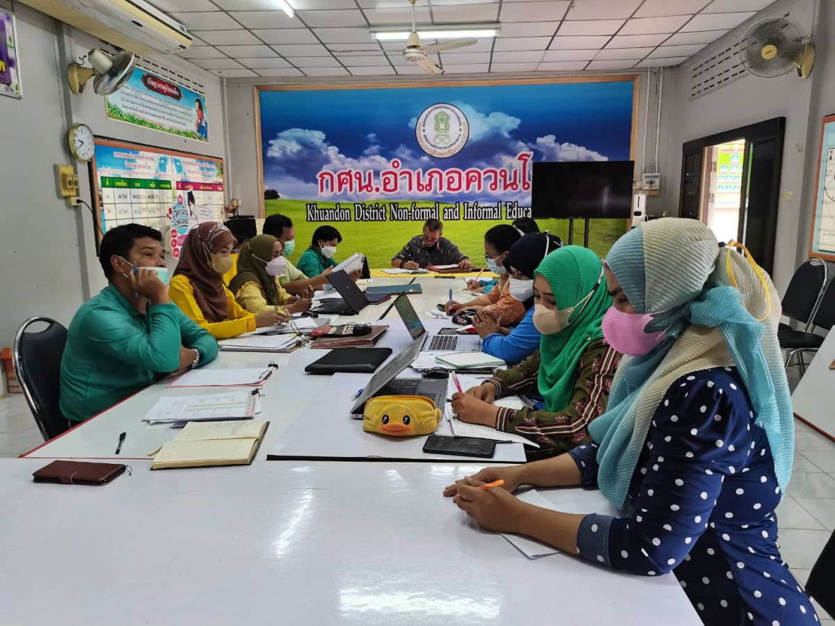 นางสาวนุรวาตี หมัดสกุล ครู กศน.ตำบลย่านซื่อและนางสาวรมณีย์ ทิ้งปากถ้ำ ครูอาสาสมัคร กศน.ตำบลย่านซื่อ ได้รับมอบหมายจากนายคณาธิป บุญญารัตน์ รองผู้อำนวยการสำนักงาน กศน.จังหวัดสตูล รักษาการในตำแหน่งผู้อำนวยการ กศน.อำเภอควนโดน จังหวัดสตูล เป็นประธานดำเนินการประชุมบุคลากรในสถานศึกษา กศน.อำเภอควนโดน ประชุมเตรียมความพร้อมการจัดกิจกรรมงานการศึกษาต่อเนื่อง เพื่อร่วมกันวางแผนการจัดกิจกรรมโครงการขับเคลื่อนงาน กศน. และติดตามความก้าวหน้าการดำเนินการจัดกิจกรรมงานการศึกษานอกระบบและการศึกษาตามอัธยาศัย ณ ห้องประชุม กศน.อำเภอควนโดน อำเภอควนโดน จังหวัดสตูล