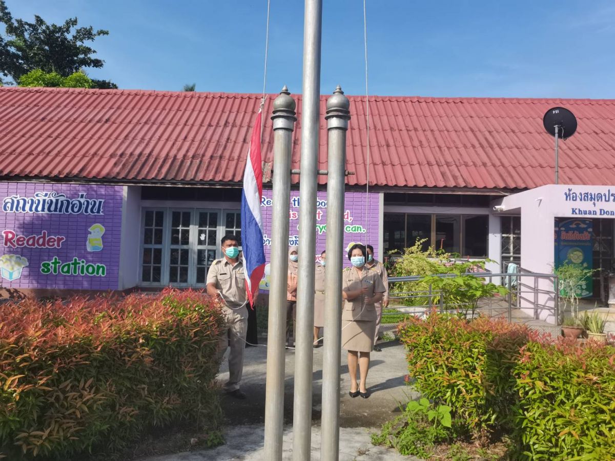 นายคณาธิป บุญญารัตน์ รองผู้อำนวยการสำนักงาน กศน.จังหวัดสตูล รักษาการในตำแหน่งผู้อำนวยการ กศน.อำเภอควนโดน จังหวัดสตูล มอบหมายให้บุคลากรในสถานศึกษา กศน.อำเภอควนโดน ดำเนินกิจกรรมเข้าแถวเคารพธงชาติ ทำกิจกรรมทางศาสนา เพื่อแสดงความจงรักภักดีต่อสถาบันชาติ ศาสนา และพระมหากษัตริย์ โดยเป็นไปตามมาตรการป้องกันการแพร่ระบาดของโรคติดเชื้อไวรัสโคโรนา 2019 หรือ (COVID-19) ณ บริเวณหน้าเสาธง กศน.อำเภอควนโดน จังหวัดสตูล
