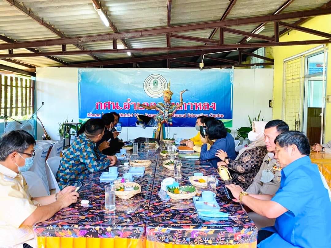 นางสาวจตุพร ทหารไทย ครูชำนาญการ รักษาการในตำแหน่ง ผู้อำนวยการ กศน.อำเภอมะนัง จะงหวัดสตูล พูร้ิมด้วยนายณัฐนิช แก้วเมฆ ครูผู้ช่วย