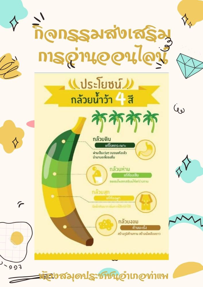 นางสาววชิรา คงพูล บรรณารักษ์ ห้องสมุดประชาชนอำเภอท่าแพ จัดกิจกรรมส่งเสริมการอ่านออนไลน์"ประโยชน์กล้วยน้ำว้า 4 สี" เพื่อส่งเสริมการอ่านให้