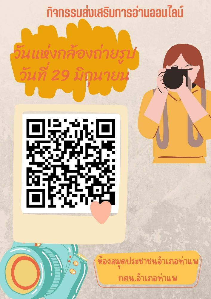 นางสาววชิรา คงพูล บรรณารักษ์ ห้องสมุดประชาชนอำเภอท่าแพ จัดกิจกรรมส่งเสริมการอ่านออนไลน์"วันแห่งกล้องถ่ายรูป 29 มิถุนายน " เพื่อส่งเสริมการอ่านให้กับประชาชนที่สนใจ ได้รู้ประโยชน์เกี่ยวกับกล้องถ่ายรูป ถูกคิดค้นขึ้นโดยนักประดิษฐ์ชาวฝรั่งเศส Joseph Nicéphore Niépce ผู้ถ่ายภาพแรกบนโลกเมื่อปี 1825