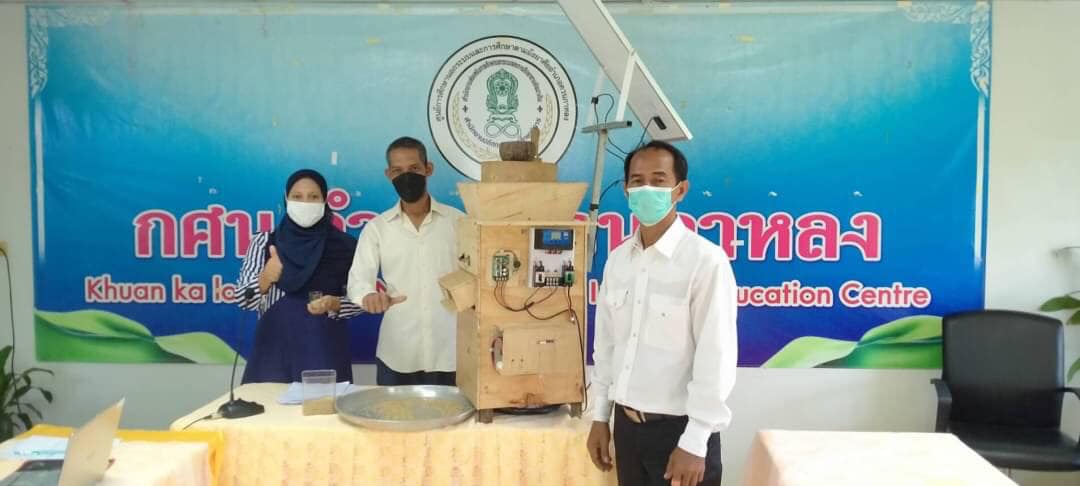 นายทวีศักดิ์ แซ่เจน ครูชำนาญการ รักษาการในตำแหน่งผู้อำนวยการศูนย์ กศน.อำเภอควนกาหลง มอบหมายให้นางวนิดา ปังแลมาปุเลา ครูอาสาฯ นำนักศึกษาเข้าร่วมการประเมินโครงงานภูมิปัญญานวัตกรรมเครื่องโม่ข้าวคัดแยกพอเพียงจากไ้ม้ ผ่านระบบออนไลน์ณ กศน.อำเภอควนกาหลง จังหวัดสตูล