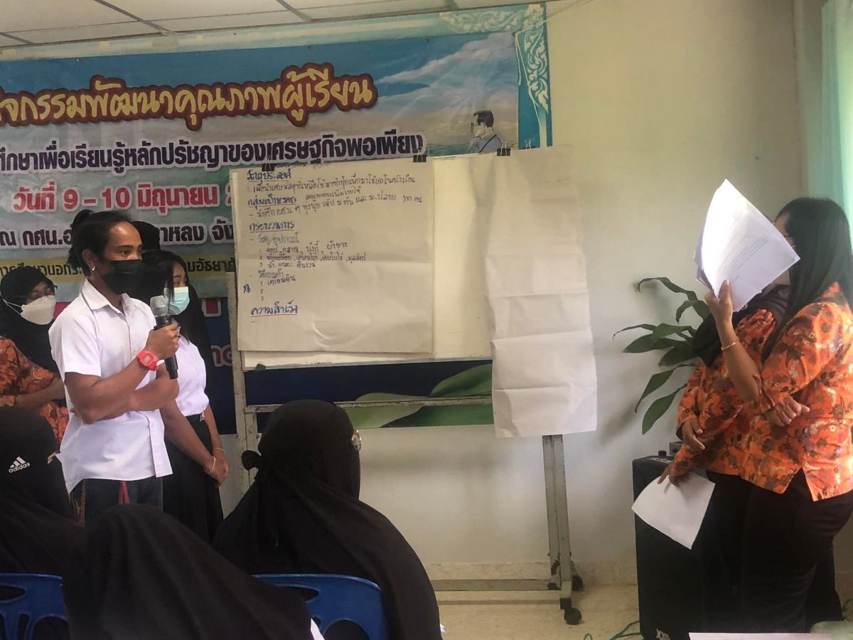 กศน.อำเภอควนกาหลง จังหวัดสตูล จัดกิจกรรมพัฒนาคุณภาพผู้เรียนโครงการการเรียนรู้ตามหลักปรัชญาของเศรษฐกิจพอ โดยได้รับเกียรติจาก นางสาวนิตยา จิตภักดี ผู้อำนวยการ กศน.อำเภอนาทวี พร้อมด้วย คณะครูกศน.อำเภอนาทวี เป็นวิทยากรให้ความรู้และเป็นพี่เลี้ยงการเตรียมความพร้อมเข้ารับการประเมินศูนย์การศึกษาตามหลักปรัชญาของเศรษฐกิจพอเพียง ด้านการศึกษา (ศรร.) ณ กศน.อำเภอควนกาหลง จังหวัดสตูล