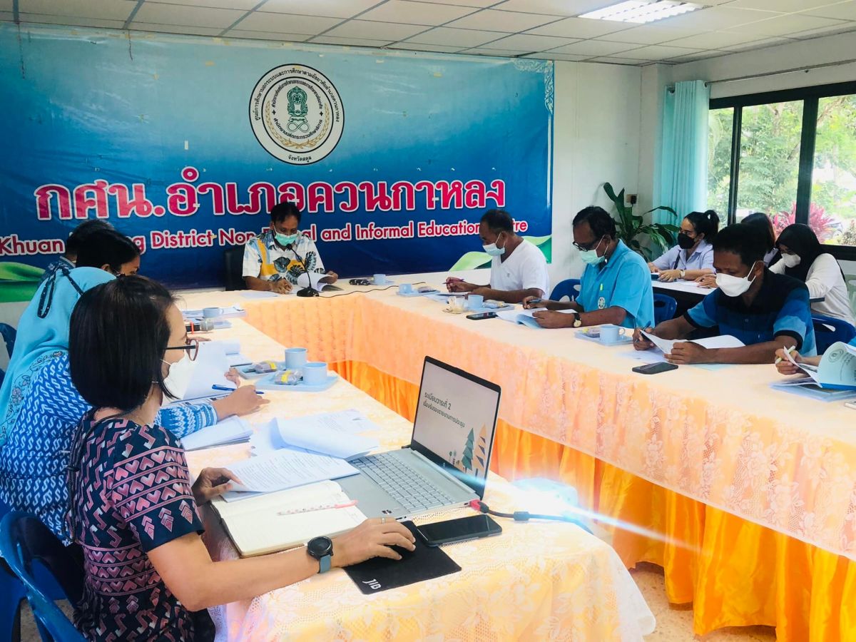 นายทวีศักดิ์ แซ่เจน ครูชำนาญการ รักษาการในตำแหน่งผู้อำนวยการศูนย์ กศน.อำเภอควนกาหลง พร้อมด้วยบุคลากร จัดประชุมคณะกรรมการสถานศึกษาเพื่อปรึกษาหารือติดตามการดำเนินงานกศน.ให้เป็นไปในทิศทางเดียวกันโดยกระบวนการดำเนินการจัดกิจกรรมเป็นไปตามแนวปฏิบัติการควบคุมและป้องกันการแพร่ระบาดของโรคติดเชื้อไวรัสโคโรน่า 2019