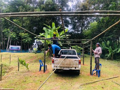 นายทวีศักดิ์ แซ่เจน ครูชำนาญการ รักษาการในตำแหน่งผู้อำนวยการศูนย์ กศน.อำเภอควนกาหลงมอบหมายให้บุคลากรร่วมกันพัฒนาอาคารสถานที่เตรียมความพร้อมการประเมินศูนย์การเรียนรู้ตามหลักปรัชญาของเศรษฐกิจพอเพียงด้านการศึกษา (ศรร.)ในด้านอาคารสถานที่ ณ กศน.อำเภอควนกาหลง จังหวัดสตูล