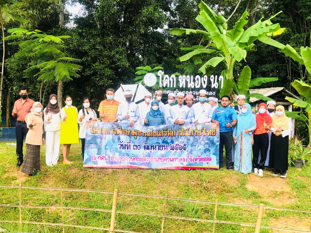 นายทวีศักดิ์ แซ่เจน ครูชำนาญการ รักษาการในตำแหน่งผู้อำนวยการศูนย์ กศน.อำเภอควนกาหลง พร้อมด้วยบุคลากรร่วมต้อนรับ คณะครูและนักศึกษากศน.ในสถาบันปอเนาะอำเภอนาทวี จังหวัดสงขลา ในการศึกษาดูงาน ห้องสมุดประชาชน อำเภอควนกาหลง และศูนย์เรียนรู้ โคก หนอง นา กศน.อำเภอควนกาหลง จังหวัดสตูล