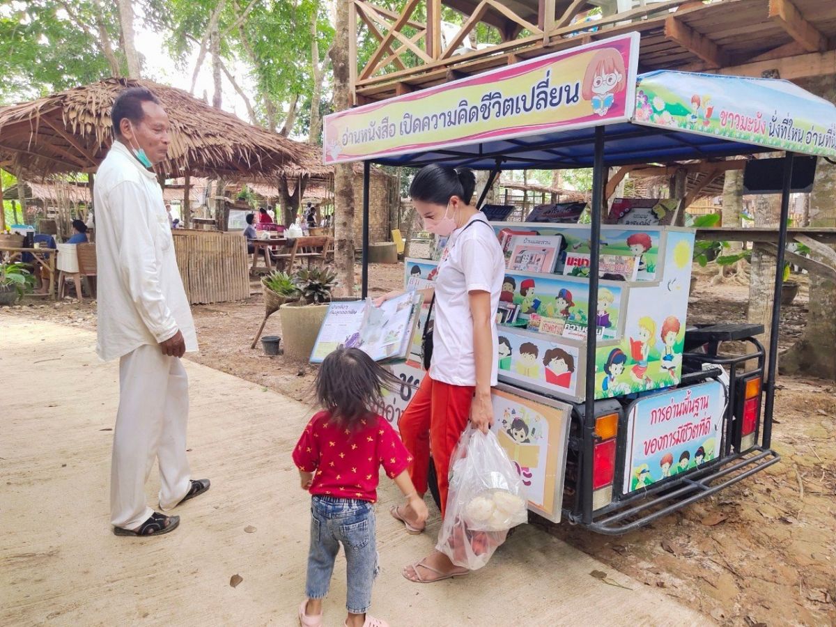 ห้องสมุดประชาชนอำเภอมะนัง จัดกิจกรรมส่งเสริมการอ่านรถมินิโมบายห้องสมุดประชาชนเคลื่อนที่ ตลาดย้อนยุค\"หลาดสวนไผ่ วัดผัง 7 \"