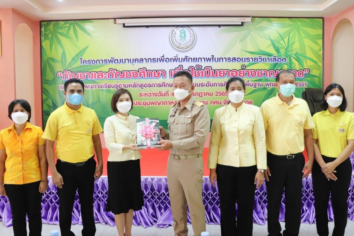 นายมรกต กันหนองผือ ผู้อำนวยการศูนย์ กศน.อำเภอละงู จังหวัดสตูล พร้อมด้วยครู กศน.ตำบล ครูอาสาสมัครฯ และครู ศรช. เข้าร่วมโครงการพัฒนาบุคลากรเพื่อเพิ่มศักยภาพในการสอนรายวิชาเลือก "กัญชาและกัญชงศึกษา เพื่อใช้เป็นยาอย่างชาญฉลาด" และจัดทำแผนการเรียนรู้ตามหลักสูตรการศึกษานอกระบบระดับการศึกษาขั้นพื้นฐาน พุทธศักราช 2551 เพื่อสร้างความเข้าใจในการจัดกิจกรรมการเรียนการสอนกัญชาและกัญชงสำหรับนักศึกษา ณ หอประชุมพญากาหลง สำนักงาน กศน.จังหวัดสตูล