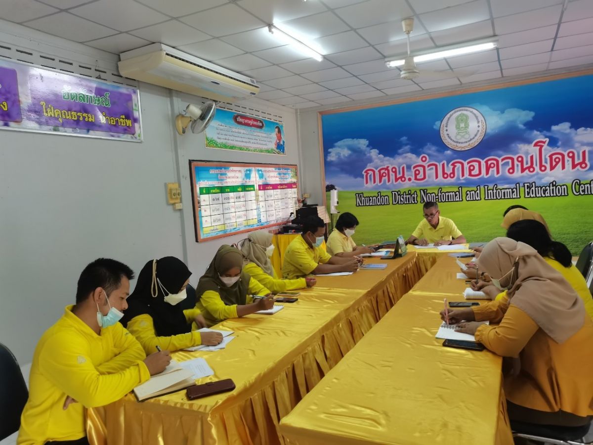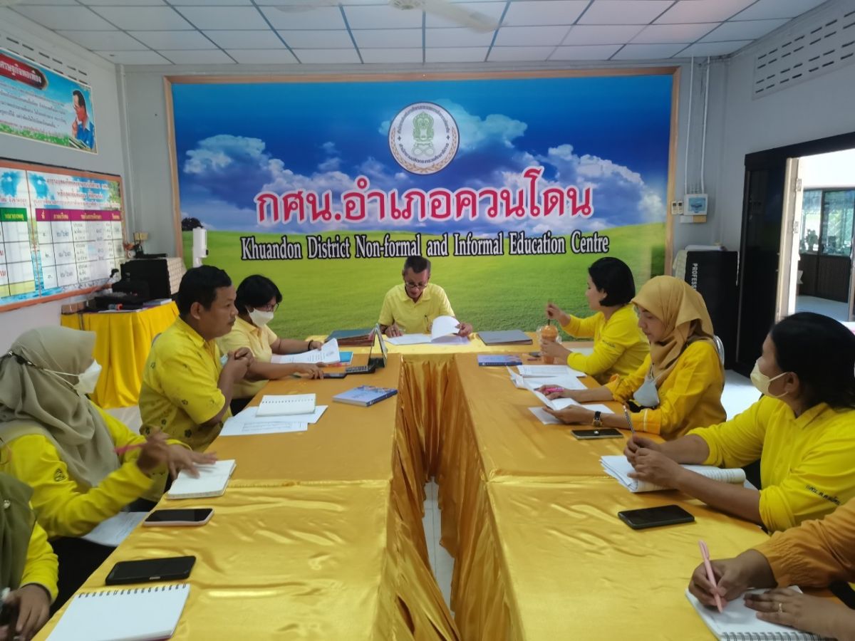 นายคณาธิป บุญญารัตน์ รองผู้อำนวยการสำนักงาน กศน.จังหวัดสตูล รักษาการในตำแหน่งผู้อำนวยการ กศน.อำเภอควนโดน จังหวัดสตูล เป็นประธานและดำเนินการประชุมบุคลากรในสังกัด กศน.อำเภอควนโดน เพื่อร่วมกันวางแผนขับเคลื่อนการจัดกิจกรรมงาน กศน. ประจำปีงบประมาณ 2565 ไตรมาส 3-4 และติดตามความก้าวหน้าการดำเนินการจัดกิจกรรมการงานศึกษาต่อเนื่องไตรมาส 3 ณ ห้องประชุม กศน.อำเภอควนโดน จังหวัดสตูล
