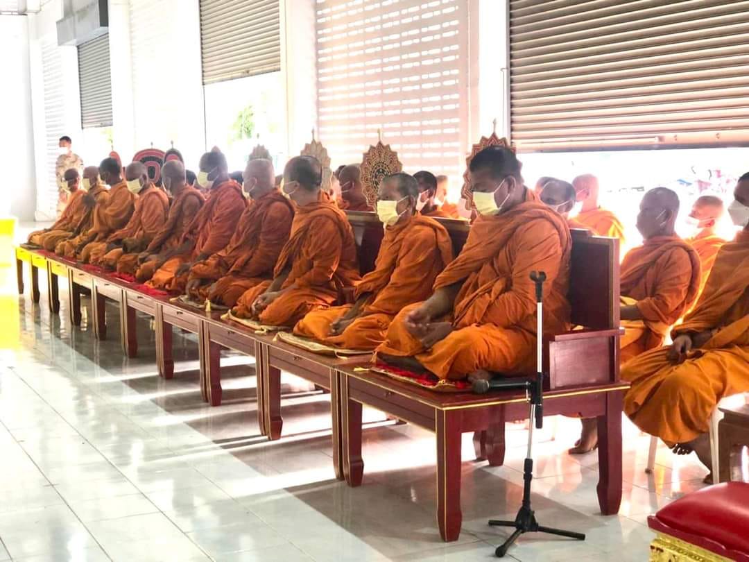 นางสาวจตุพร ทหารไทย ครูชำนาญการ รักษาการในตำแหน่ง ผู้นวยการศูนย์ กศน.อำเภอมะนัง จังหวัดสตูล พร้อมด้วยบุคลากรในสังกัดที่นับถือศาสนาพุทธ