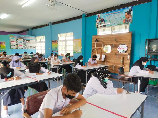 นางสาววชิรา คงพูล บรรณารักษ์ปฏิบัติการ รักษาการในตำแหน่ง ผู้อำนวยการกศน.อำเภอท่าแพ มอบหมายให้ ครู กศน. ตำบลและครูอาสาสมัครฯตำบลแป-ระ ดำเนินการจัดสอบกลางภาคเรียนให้กับนักศึกษาระดับมัธยมศึกษาตอนปลาย ประจำภาคเรียนที่ 1 ปีการศึกษา 2565 ภายใต้การควบคุมการแพร่ระบาดเชื้อไวรัสโคโรนา 2019 ณ กศน.ตำบลแป-ระ อำเภอท่าแพ จังหวัดสตูล