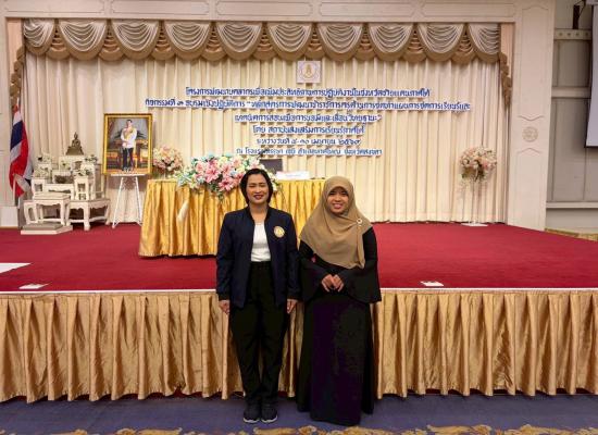 นางวาสนา อนุสรณ์ประเสริฐ ผู้อำนวยการสำนักงาน ส่งเสริมการเรียนรู้จังหวัดสตูล นางสาวบุปผาชาติ เรืองกูล รองผู้อำนวยการสำนักงาน ส่งเสริมการเรียนรู้จังหวัดสตูล