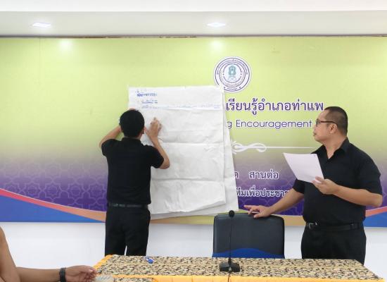 วันที่ 30 มีนาคม 2569 นายอาดำ ลิงาลาห์ ผู้อำนวยการสถานศึกษาศูนย์ส่งเสริมการเรียนรู้ระดับอำเภอท่าแพ มอบหมายให้นางภาวิดา หลีเส็น ครูอาสาสถาบันการศึกษาปอเนาะ เข้าร่วมประชุมหัวหน้าส่วนราชการ ณ สกร.ระดับอำเภอท่าแพ โดยมี นายเอนก ชำนาญนา นายอำเภอท่าแพ เป็นป |