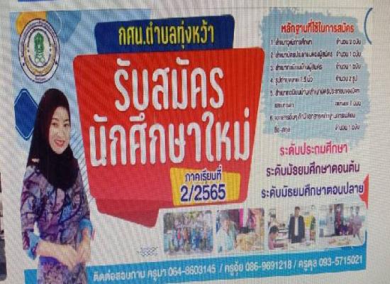 กศน.อำเภอทุ่งหว้า รับสมัครนักศึกษาใหม่ ภาคเรียนที่ 2/2565