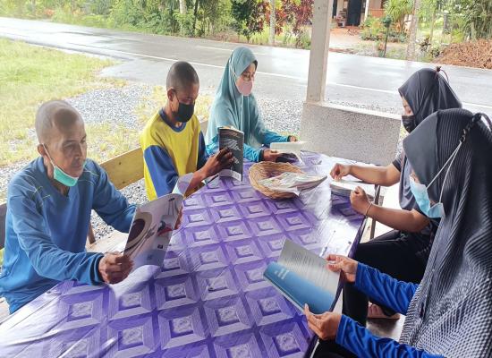 อาสาสมัครกศน.ตำบลควนโดน หมุนเวียนสื่อบ้านหนังสือชุมชนร้านน้ำชา