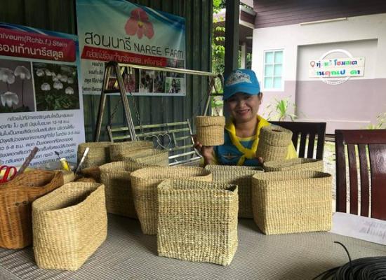 กศน.อำเภอทุ่งหว้า ติดตามกลุ่มอาชีพจักสานหญ้าแฝกหลวง