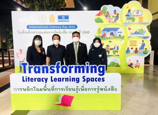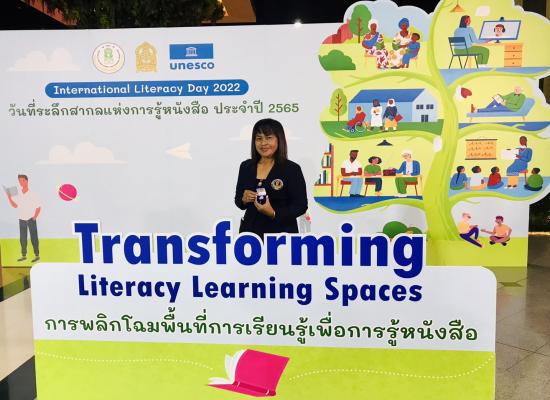 8 กันยายน 2565 นายมรกต กันหนองผือ ผู้อำนวยการศูนย์กศน.อำเภอละงู จังหวัดสตูล ร่วมพิธีเฉลิมฉลอง \"วันที่ระลึกสากลแห่งการรู้หนังสือ\" ประจำปี 2565 Transforming Literacy Learning Spaces การพลิกโฉมพื้นที่การเรียนรู้เพื่อการรู้หนังสือ