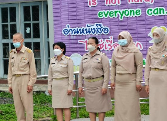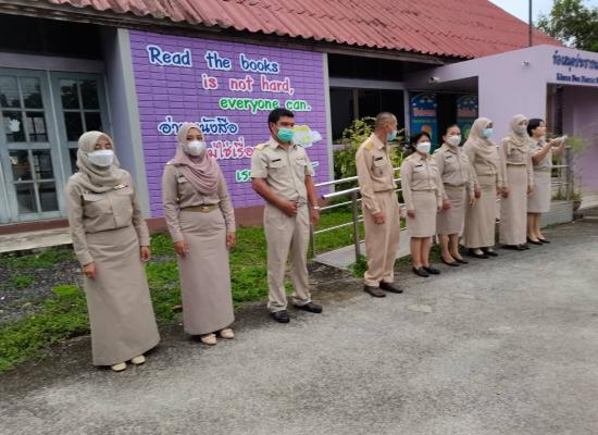 กศน.ตำบลควนสตอ อำเภอควนโดน จังหวัดสตูล เคารพธงชาติ ทำกิจกรรมทางศาสนา เพื่อแสดงความจงรักภักดีต่อสถาบันชาติ ศาสนา และพระมหากษัตริย์