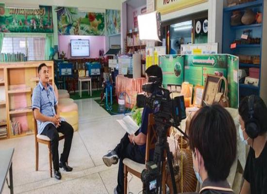 กศน.อำเภอทุ่งหว้า พร้อมด้วยคณะทีมงานที่ปรึกษาจัดทำโครงงาน ให้สัมภาษณ์โดยศูนย์เทคโนโลยีทางการศึกษา ETV ถ่ายทำผลงานของนักศึกษาจากโครงงานวิทยาศาสตร์ด้านการใช้และการอนุรักษ์พลังงานไฟฟ้าและนวัตกรรมขยะ เรื่อง ปั้ม 2IN1และกระดาษจากเยื่อคลุ้ม