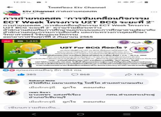 กศน.อำเภอทุ่งหว้า เข้าร่วมรับฟังการขับเคลื่อนกิจกรรม ECT Week โครงการ U2T ระยะที่ 2