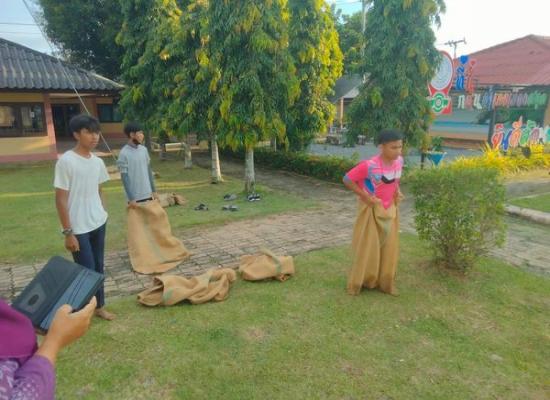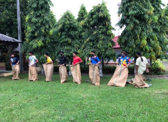 กศนตำบลพิมาน นำนักศึกษาซ้อมกีฬาวิ่งกระสอบ