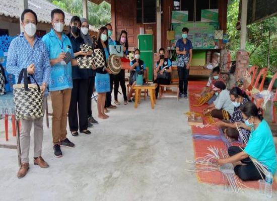 กศน.อำเภอทุ่งหว้านำนางออมทรัพย์ ชูสวัสดิ์ ครูชำนาญการ และคณะฯจาก สถาบัน กศน.ภาคใต้ เยี่ยมชมกิจกรรมของ กลุ่มวิสาหกิจชุมชนจักสานเส้นยางพารา (จักสานเส้นยางพาราเทอร์โมพลาสติก)