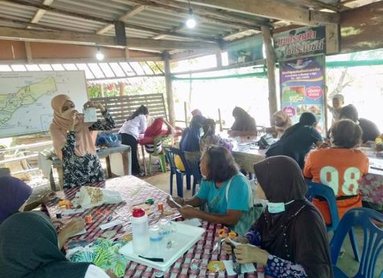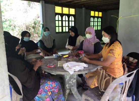 กศน.ตำบลเกาะสาหร่าย เยี่ยมกลุ่มโครงการศูนย์ฝึกอาชีพชุมชน รูปแบบชั้นเรียนวิชาชีพ หลักสูตรการทำผลิตภัณฑ์จากผ้าปาเต๊ะ