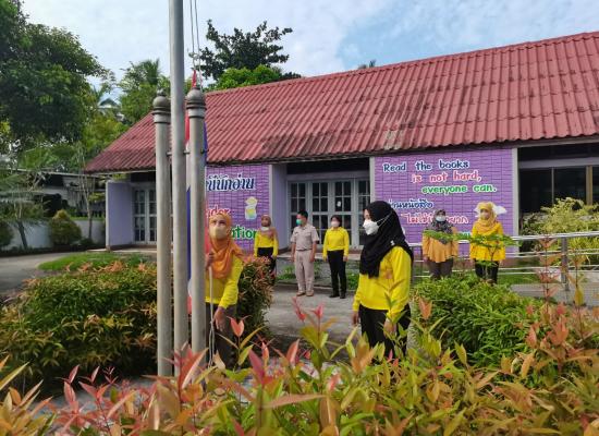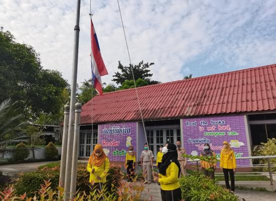กศน.ตำบลควนสตอ อำเภอควนโดน จังหวัดสตูล เคารพธงชาติ ทำกิจกรรมทางศาสนา เพื่อแสดงความจงรักภักดีต่อสถาบันชาติ ศาสนา และพระมหากษัตริย์