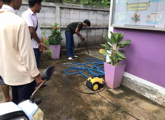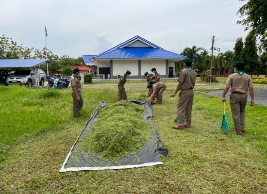 กศน.ตำบลบ้านควน นำนักศึกษาร่วมกันพัฒนาบริเวณภายในและภายนอก กศน.ตำบลบ้านควน