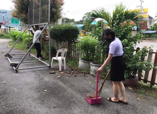 กศน.ตำบลฉลุง นักศึกษาร่วมกันพัฒนาบริเวณภายใน กศน.ตำบลฉลุง