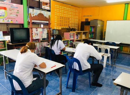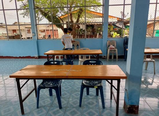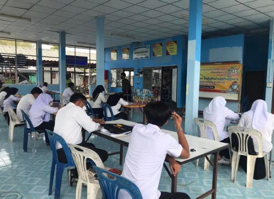 กศน.ตำบลตำมะลัง อำเภอเมืองสตูล นำนักเรียนร่วมกันเตรียมสถานที่สอบกลางภาค 1/65