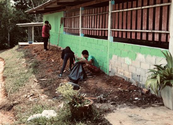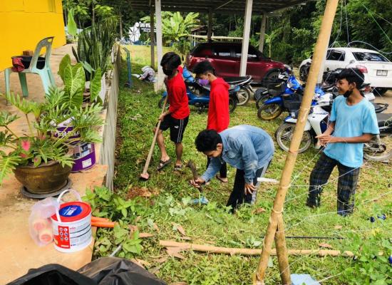 กศน.อำเภอควนกาหลงจัดกิจกรรมชมรมอาสาพัฒนาปอเนาะร่วมพัฒนารอบๆๆบริเวณปอเนาะ