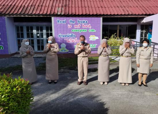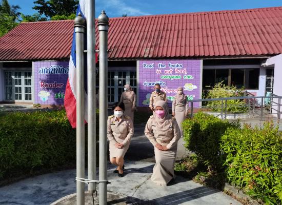 กศน.ตำบลควนสตอ อำเภอควนโดน จังหวัดสตูล เคารพธงชาติ ทำกิจกรรมทางศาสนา เพื่อแสดงความจงรักภักดีต่อสถาบันชาติ ศาสนา และพระมหากษัตริย์