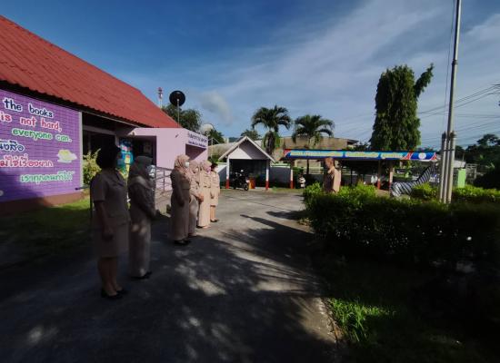 กศน.ตำบลวังประจัน อำเภอควนโดน จังหวัดสตูล เคารพธงชาติ ทำกิจกรรมทางศาสนา เพื่อแสดงความจงรักภักดีต่อสถาบันชาติ ศาสนา และพระมหากษัตริย์
