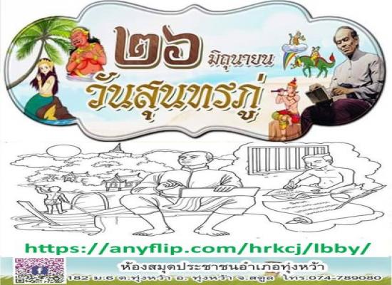 ห้องสมุดประชาชนอำเภอทุ่งหว้า ส่งเสริมการอ่านออนไลน์ E-BOOk \"26 มิถุนายน วันสุนทรภู่