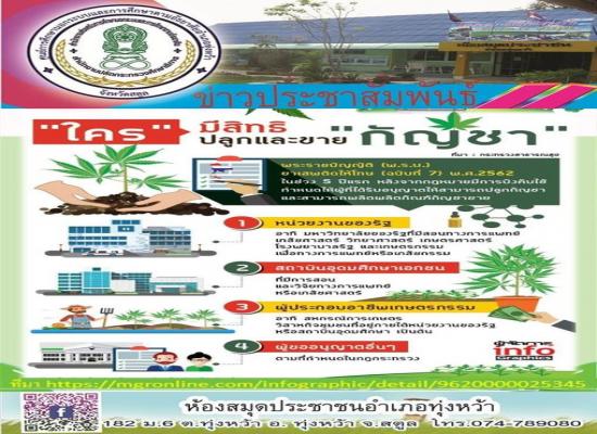 ห้องสมุดประชาชนอำเภอทุ่งหว้า ส่งเสริมการอ่านออนไลน์ \"ใครมีสิทธิปลูกและขาย กัญชา\"