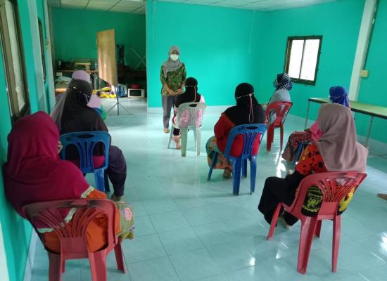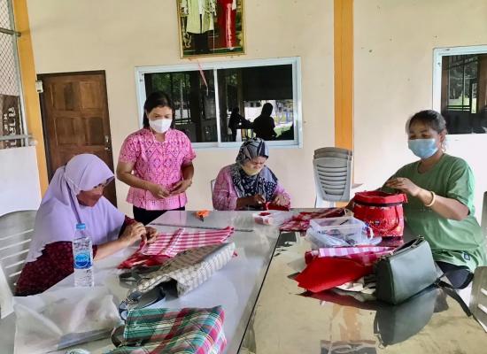 กศน.ตำบลคลองขุด เยี่ยม ติดตามโครงการศูนย์ฝึกอาชีพชุมชน รูปแบบชั้นเรียนวิชาชีพ หลักสูตรกระเป๋าผ้าแฟนซี
