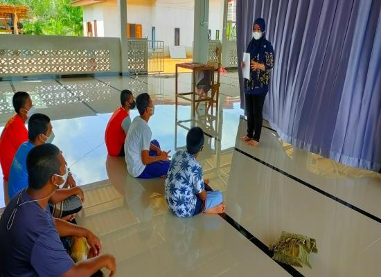 นางสาววชิรา คงพูล บรรณารักษ์ปฏิบัติการ รักษาการในตำแหน่ง ผู้อำนวยการ กศน.อำเภอท่าแพ จังหวัดสตูล มอบหมายให้ นางมัยมูนะห์ หะยีเหย็บ ครู อาสาฯ จัดกิจกรรมอัธยาศัย กลุ่มเป้าหมายพิเศษ คนพิการ นางเจ๊ะดง อุสัยนี กิจกรรมจักรสานทำตูดง |