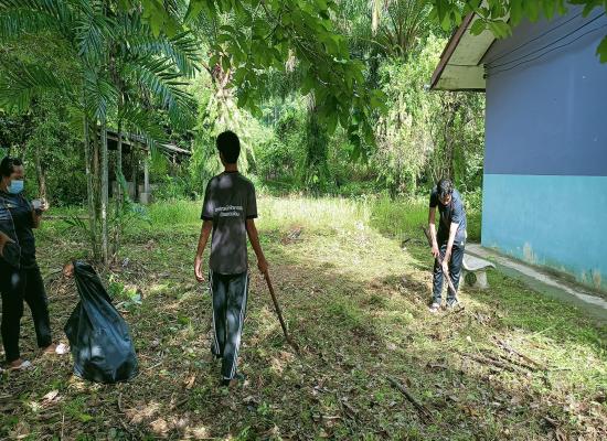 กศน.อำเภอควนกาหลงเตรียมความพร้อมในการจัดทำศูนย์เรียนรู้เศษฐกิจพอเพียง 26 พฤษภาคม 2565 นายทวีศักดิ์ แซ่เจน ครูชำนาญการ รักษาการในตำแหน่งผู้อำนวยการศูนย์ กศน.อำเภอควนกาหลง นำนักศึกษามูลนิธิร่มเย็น ร่วมกันเตรียม ไม้ไผ่ วัสดุ อุปกรณ์ ในการจัดทำศูนย์เรียนเศ |