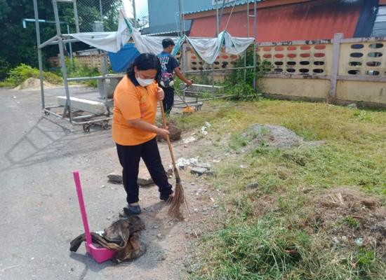 กศน.ตำบลฉลุง นักศึกษาร่วมกันพัฒนาบริเวณภายในและภายนอก กศน.ตำบลฉลุง