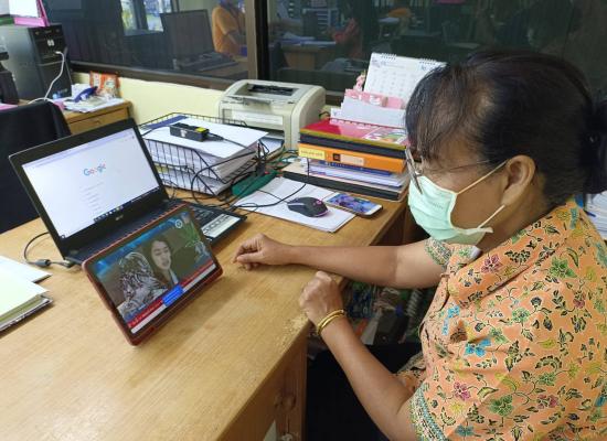 นางสาวยูวาหรี รีหมีน ครูผู้สอนคนพิการ กศน.อำเภอทุ่งหว้า เข้าร่วมรับชมการประชุมเชิงปฏิบัติการขับเคลื่อนการจัดการศึกษา \"กัญชาและกัญชงสร้างสุขภาพ สร้างรายได้\"