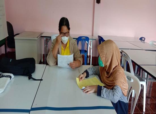 วันที่ 17 พฤษภาคม 2565 นางสาวจตุพร ทหารไทย ครูชำนาญการ รักษาการในตำแหน่ง ผู้อำนวยการศูนย์ กศน.อำเภอมะนัง จังหวัดสตูล พร้อมด้วยนางสาวทิพาพร โต๊ะมิ ครูอาสาฯ และนายนภัทร จันทวิลาศ ครู กศน.ตำบล ดำเนินการสอน on site ภาคเรียนที่ 1 ปีการศึกษา 2565 ระ |