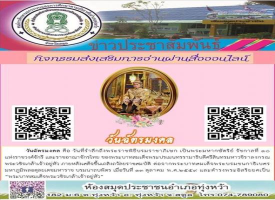 ห้องสมุดประชาชนอำเภอทุ่งหว้า ส่งเสริมการอ่านออนไลน์📚📖 \"วันฉัตรมงคล\"