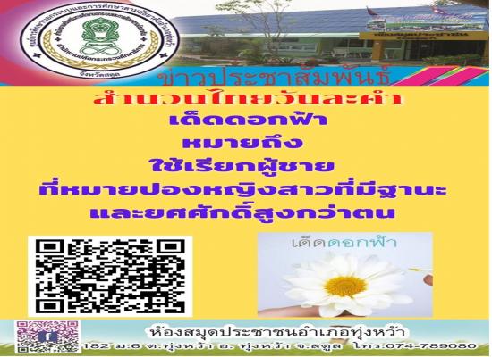 ห้องสมุดประชาชนอำเภอทุ่งหว้า ส่งเสริมการอ่านออนไลน์📚📖 \" สำนวนไทยวันละคำ เด็ดดอกฟ้า\"
