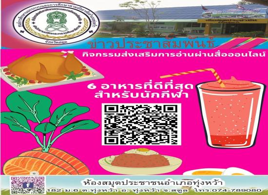 ห้องสมุดประชาชนอำเภอทุ่งหว้า ส่งเสริมการอ่านออนไลน์📚📖 \"6 อาหารที่ดีที่สุด สำหรับนักกีฬา\"