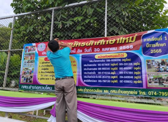 กศน.อำเภอควนโดน ร่วมติดตั้งป้ายประชาสัมพันธ์รับสมัครนักศึกษาใหม่ภาคเรียนที่ 1/2565
