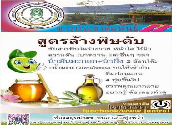 ห้องสมุดประชาชนอำเภอทุ่งหว้า ส่งเสริมการอ่านออนไลน์ \" สูตรล้างตับพิษ\"
