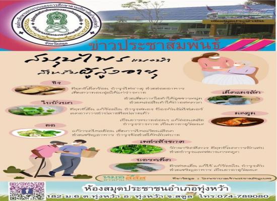 ห้องสมุดประชาชนอำเภอทุ่งหว้า ส่งเสริมการอ่านออนไลน์ \" สุมุนไพรแนะนำสำหรับผู้สูงอายุ\"