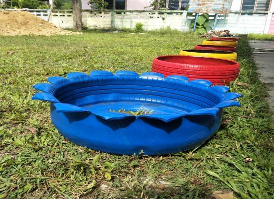 กศน.อำเภอทุ่งหว้า แนะนำนักศึกษาจัดทำโครงงานสิ่งประดิษฐ์จากล้อยางรถยนต์ที่ไม่ใช้แล้ว v2